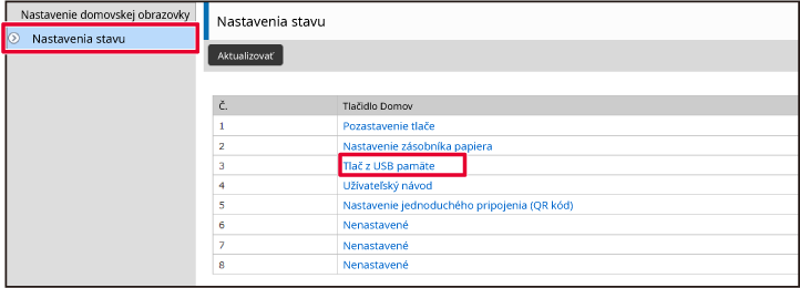 Pri niektorých nastaveniach budete musieť po kliknutí na položku [Nastavenie domovskej obrazovky] zadať svoje používateľské heslo. Ak ste nevykonali overenie používateľa, musíte zadať heslo administrátora.