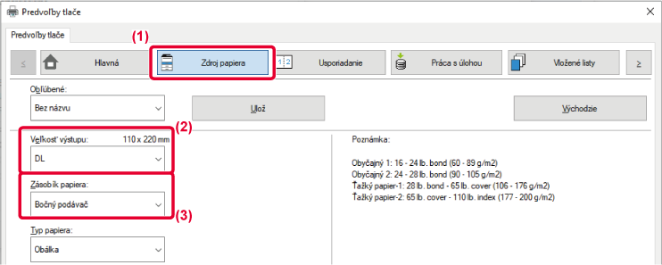 veľkosť a typ papiera používaného pre tlač a zásobník papiera.
