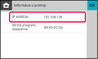 V režime nastavenia zariadenia vytlačte adresu IP zariadenia