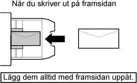 Det går bara att skriva ut eller kopiera på kuvertens framsida. Lägg dem alltid med framsidan uppåt.