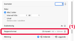 inställningen för ”Pappersformat" på skärmen för sidinställningar.