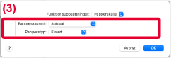 - Välj kuvertstorlek i menyn "Pappersformat".