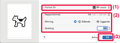 Välj [Utskriftsformat] i menyn [Arkiv] och välj skrivare.