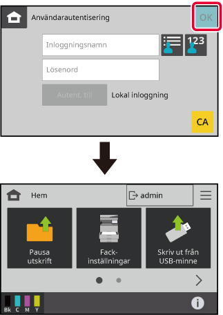 användarnummer och lösenord. Be den som administrerar maskinen om
