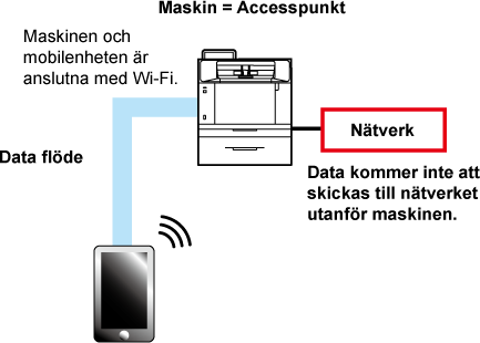 Maskinen kan ställas in som en åtkomstpunkt och kommunicera