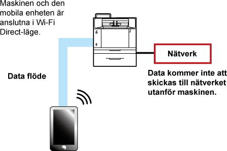 via Wi-Fi. I det här läget är kommunikationen med det nätverk som