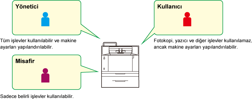 makineyi kullanması yasaklanabilir veya belirli işlevleri kullanmaları