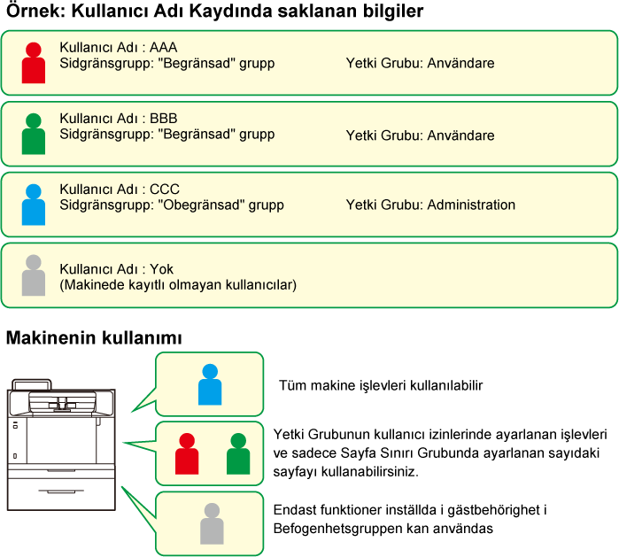 Kullanıcı Kontrolü, makineyi kullanan kullanıcıları kaydetmenizi ve