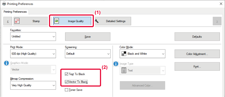 Select whether you want to print black data area with only black toner. |