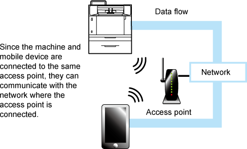 The machine can be set as an access point and communicate