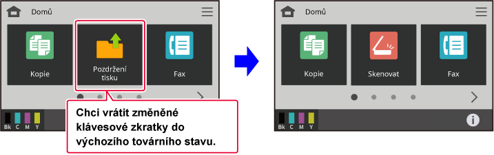zkratky na výchozí obrazovce na výchozí nastavení výrobce.