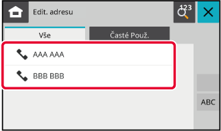 Klepněte na kartu [Adresa] a na klávesu [Adresář].