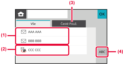 Zobrazí se adresy registrované jako adresy "Časté používá.".