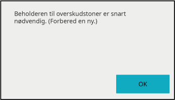 Når beholderen til opsamling af toner er næsten fuld, vises