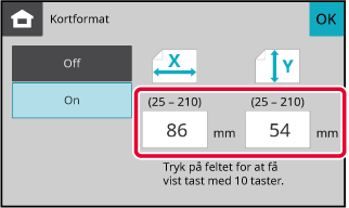 Tryk på tasten [On] og angiv den ønskede originalstørrelse.