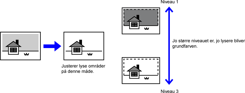 Jo større niveauet er i [Baggrundsjustering], jo lysere bliver