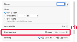i den størrelse, som er angivet i "Papirstørrelse" på sideopsætningsskærmen,