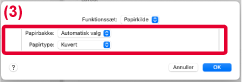 - Vælg kuvertstørrelsen fra menuen "Papirformat".