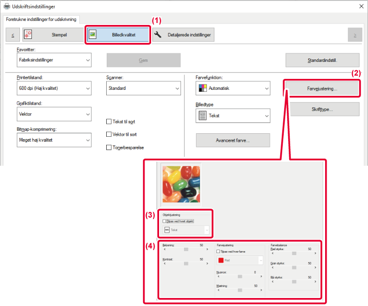 gør det muligt at udskrive ved brug af de mest velegnede farveindstillinger