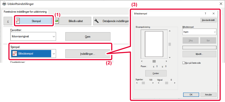 - Vælg [Billedstempel] fra "Stempel" og klik på [Indstillinger].