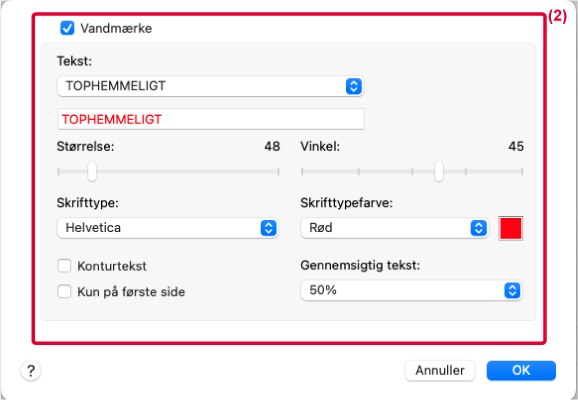 vandmærkeindstillinger som f.eks. valg af en tekst.