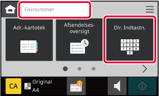 Tryk på tasten [Dir. Indtastn.] eller [Faxnummer] for at indtaste et destinationsfaxnummer.