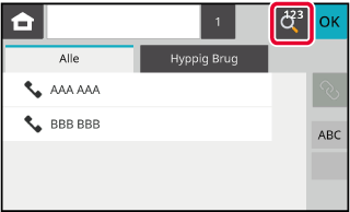 Tryk på tasten [Adressebog], og tryk derefter på tasten [Benyt søgenummer].