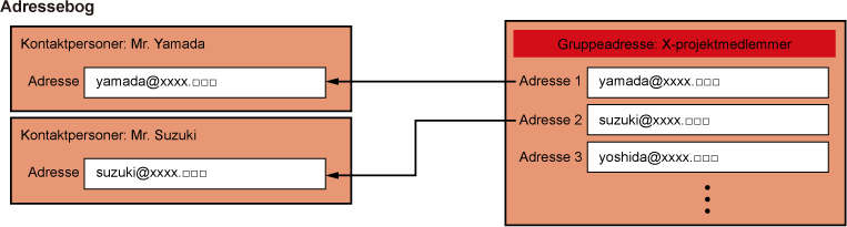 kan adresser registreres som E.mail, FTP, Skrivebord osv.