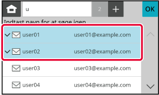 Når du bruger adressebogen i nem scanning eller e-mailfunktionen,