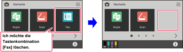 Auf der Startseite können Sie die Anzahl der Schnellzugriffstasten