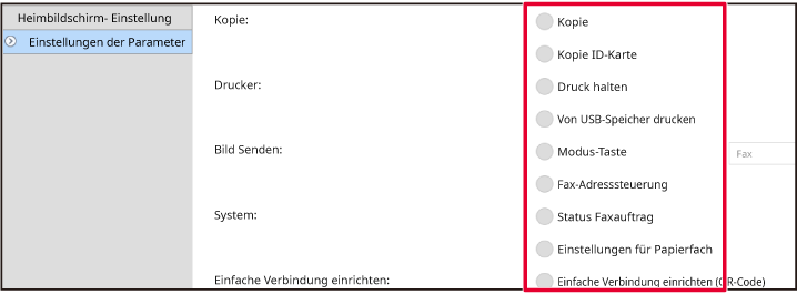Klicken Sie auf [Einstellungen der Parameter] und dann auf die Schnellzugriffstaste die Sie hinzufügen möchten.