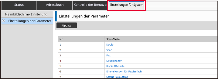 Für manche Einstellungen ist es ggf. erforderlich, Ihr Benutzerpasswort einzugeben, nachdem Sie auf [Heimbildschirm Einstellung] geklickt haben. Wenn Sie keine Benutzerauthentifizierung ausgeführt haben, müssen Sie das Administratorenpasswort eingeben.