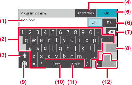 Zeichen. Über die [Leer]-Taste kann eine Leerstelle zwischen den