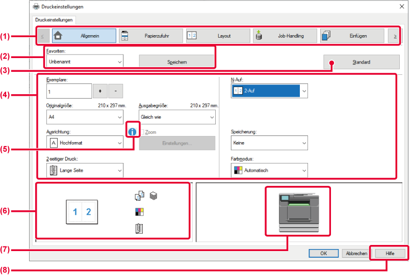 Der Druckvorgang wird gestartet.Der Druckertreiber-Einstellungsbildschirm
