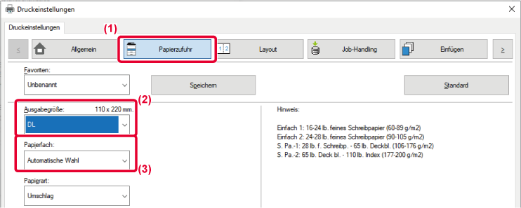 ist, wird [Papierart] automatisch auf [Umschlag] gesetzt.
