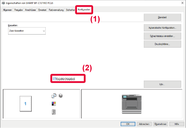 Erläuterungen der Einstellungen können Sie in der Druckertreiberhilfe finden.Wenn Sie dieses Gerät als geteilten Drucker