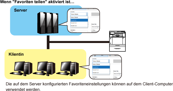 verwenden und im Druckertreiber des geteilten Servers "Favorit" eingestellt