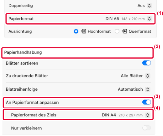 ein Dokument zu drucken, dessen Papierformat sich vom Original unterscheidet.