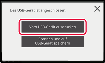 Wenn der Bildschirm nicht angezeigt wird, berühren Sie die Taste "Vom USB-Gerät ausdrucken".