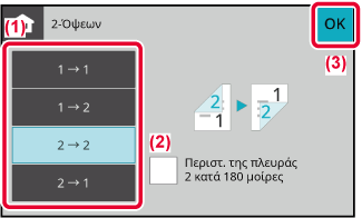 Επιλέξτε λειτουργία αντιγραφής διπλής όψης.