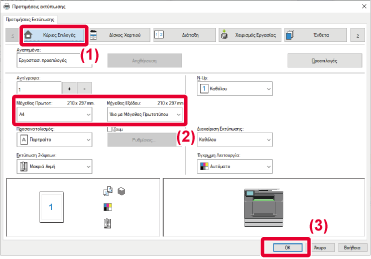 [Κύριες Επιλογές] και το "Μέγεθος Εξόδου" έχει οριστεί σε