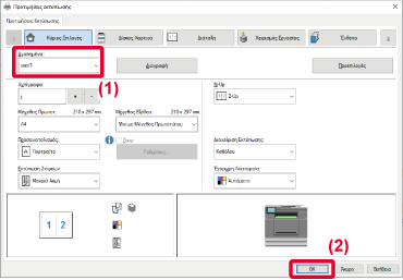 του παραθύρου ιδιοτήτων του προγράμματος οδήγησης εκτυπωτή. Οι ρυθμίσεις