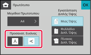 Πατήστε το πλήκτρο [Προσανατολισμός Εικόνας] που ορίζει τον ίδιο προσανατολισμό με αυτόν του πρωτοτύπου που έχετε τοποθετήσει.