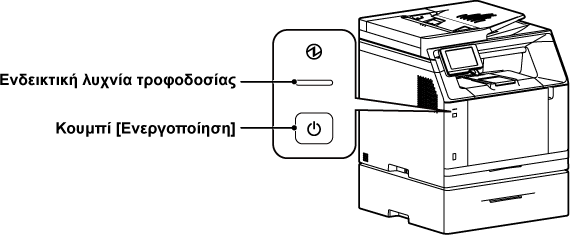 Η ενδεικτική λυχνία τροφοδοσίας αναβοσβήνει όποτε το μηχάνημα
