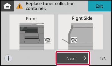 While gently pressing down on the hook at the top of the toner collection container, pull the toner collection container toward you.