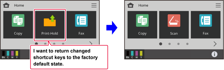 The settings are saved in the machine and applied.You can delete unneeded shortcut keys.