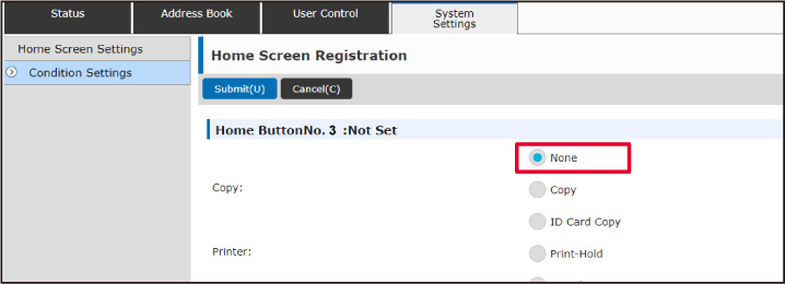 When you click the [Submit] button, the [Home Screen Registration] screen closes.