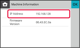 Start a Web browser on a PC on the same network the machine is on, and enter the IP address of the machine.