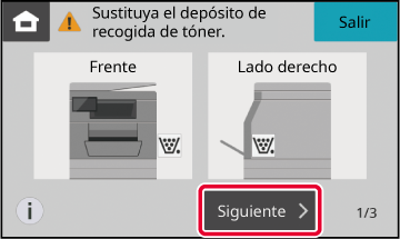 Cuando la caja de recogida de tóner esté llena, aparecerá