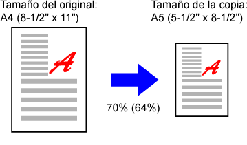 El porcentaje de reducción o ampliación se selecciona automáticamente según el tamaño del original y el tamaño de papel seleccionado.